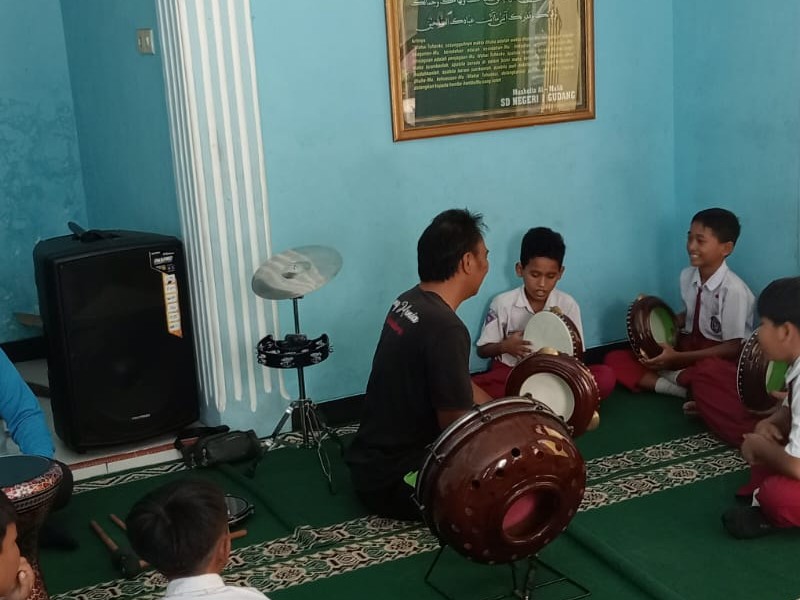 SD Negeri 1 Gudang Memiliki Ekstrakurikuler Hadrah untuk mengembangkan minat bakat siswa .selain itu juga sangat berdampak positif terhadap siswa karena dengan hadrah mampu membawa siswa dalam keagamaan dengan melantukan sholawat yang merdu . selain itu juga ekstra hadrah diadakan untuk menunjang kegiatan keagamaan sperti maulid nabi,dll. oleh karena itu untuk meningkatkan kemampuan siswa dalam bermain hadrah sehingga diadakannya latihan rutin yang telah dijadwal .